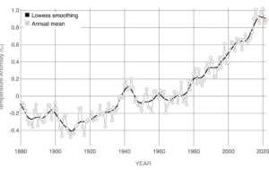 Earth’s global average surface temperature in 2020 statistically tied with 2016 as the hottest year on record, continuing a long-term warming trend due to human activities.